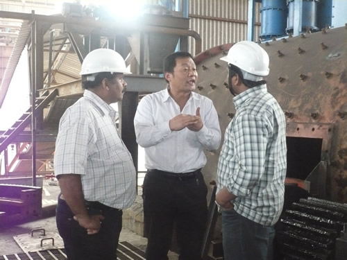 到2011年公司出口印度2.7米以上系列球磨機總數已經突破20臺,副總王曰洲2009年4月在印度MSP METALLICS LTD現場指導設備安裝調試。