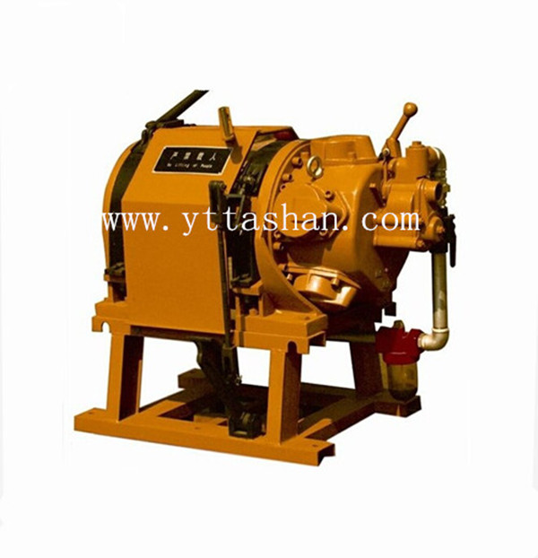 JQHS50x12氣動絞車,采用壓縮空氣為動力,推動TMH17活塞式氣動馬達工作。通過二級齒輪減速,把扭矩傳給滾筒。氣動絞車的操縱,是靠馬達體上的手操縱轉向閥實現正轉、反轉、停止等項動作。為保證氣動絞車的安全性,該氣動絞車還具有手、腳雙重剎車功能。特別適用于礦山、建筑工程以及海上、陸地油田鉆井平臺上使用。